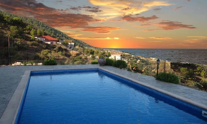 Romantic 3-bed villa w/fireplace & pool overlooking the Mediterranean | Villa in Pomos