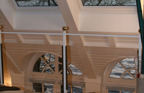 The two bedrooms are equipped with high quality box spring double beds. In the master bedroom, a small desk overlooks the lake. This bedroom has direct access to the bathroom, and has its own small balcony. The bedroom on the gallery level offers a large walk-in closet.