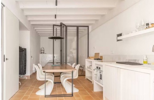 This flat is in the converted wine cellar of the 15th century renovated masia Can Bernadas in the village of Alella, just outside of Barcelona. This flat stays naturally cool in the summer and cozy in the winter.