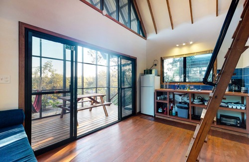 Plan a romantic getaway you'll never forget at this treehouse-style cabana in Surfside, beautifully secluded and surrounded by nature. Your cabana is equipped with a kitchenette that includes a refrigerator, freezer, blender, juicer, microwave, electric stove, toaster oven, and coffee maker to make snacks or meals. For a change of pace, try the common BBQ area with picnic seating and sear something on the grill. Enjoy plenty of natural light coming in through the big windows, a veranda where you can nap in the hammock and dine alfresco, and modern comforts that include free WiFi and a smart TV.