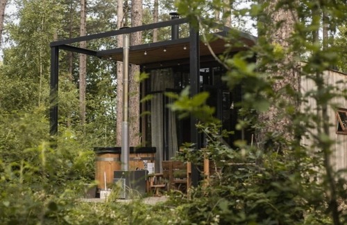 🏡 A romantic weekend for two will be unforgettable in our Sweet Cabin with hot tub, located in the forest. The cabin is cosily decorated and has a large window that gives you a unique view.