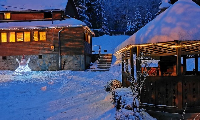 Our guest house is situated in the foothills of the Harghita Mountains in Madarasi, surrounded by forest and picturesque surroundings. The Ivó stream crosses the garden. The building is a fully insulated traditional chalet, providing a comfortable stay for 10 people. There are numerous attractions within easy reach, ski slopes 10 km away, Korond, Odorheiu Secuiesc, Parajd, Vargyas Gorge, Békás Gorge, Killer Lake, Odorheiu Secuiesc, Homorod Spa are all within 15-80 km.