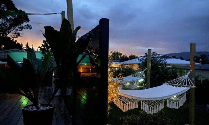 "Little Peace of Paradise" is a charming located in a guest house setting with breathtaking views of Maungatua and the surrounding wildlife. The guest house features a cozy one-bedroom with a comfortable Queen bed & futon double bed in the lounge. Guests can unwind in the hot tub and enjoy a glass of wine on the deck while admiring the scenery.