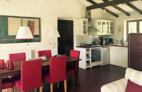 Casa Luca is the biiggest of the three house with an open plan dining, living and kitchen area and offers most privacy due to its location and a beautiful view over the pool and the lovely Tuscan Countryside.
