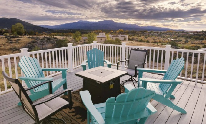 The house has magnificent views of the Sangre De Cristo Mountains and New Mexico sunsets.