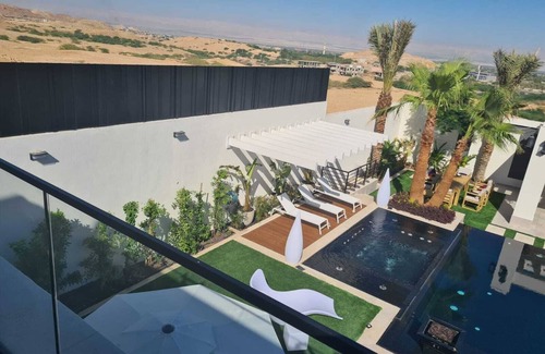 luxury Villa located in Dead Sea with private pool and Jacuzzi that you well never forget , you will have a very comfort and cozy stay , have fully kitchen staff , ice machine , barbecue , TV screen , WIFI