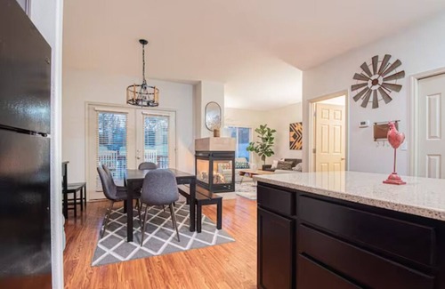 The bright living room allows for relaxation and space for reading, watching TV, enjoying the 3 sided fireplace or playing the variety of games available at this property. If you end up needing an extra bed, the sleeper sofa also has a full size bed available. Free fast WIFI is also a done deal with this townhome, so surf the internet to your heart's delight or work remotely.