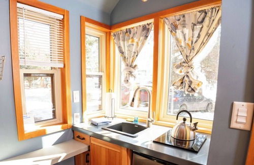 -Kitchenette with sink, induction cooktop & mini-fridge