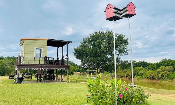 Unplug and recharge at this charming Riverfront Cabin for two. Perched up on the Water with an upper Deck and a breezy outdoor patio below, this retreat is made for lazy mornings, golden hour sunsets, and quiet nights under the stars. A perfect couples getaway where the river is your back yard.