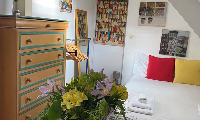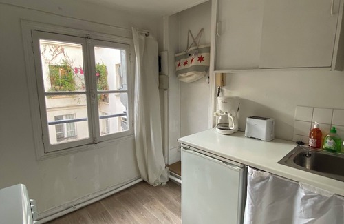 This cute small (about 20 m2 )comfortable, quiet and romantic apartment is located on the attic of an18th century building on the 4th floor (no elevator) It is very bright, peaceful and quiet looking over the roofs of Paris