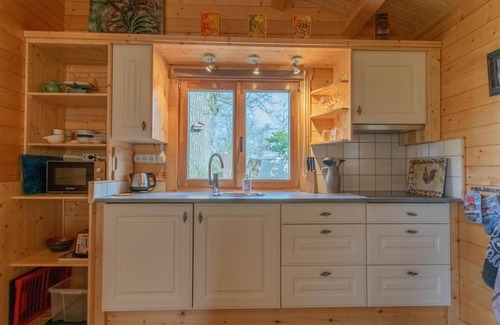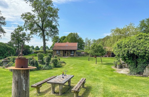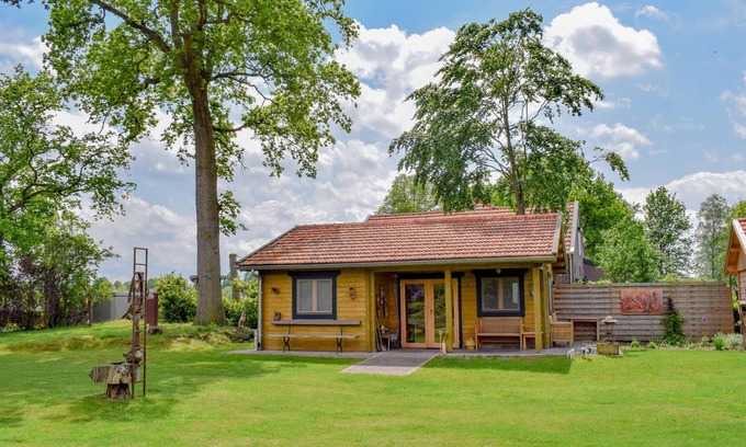 The cute wooden cottage, aptly named Under the Old Oak, is a fine base for a romantic stay in Rose Village Lottum. The house is located on the plot of artist Roos. Everywhere are nooks, seats and surprising spots with her art. The chalet is separate from the main building, so you will enjoy plenty of privacy. You have access to a spacious kitchen, separate bedroom, bathroom with rain shower and a living room with a view of the garden.