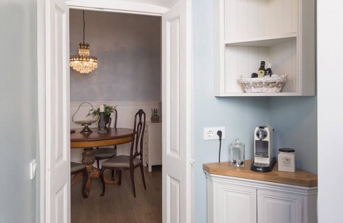 The house has two bedrooms with double beds, living room, dining room and a small separate kitchen, bathroom with bathtub and a extra toilet. The 95 square meters including a small terrace and a leafy courtyard. The house was lovingly restored by designers and equipped with historic furniture.