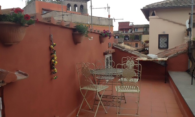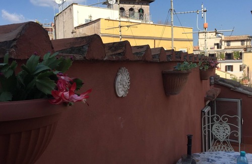 A delightful penthouse in the heart of Rome, 200 mt from piazza Navona, Castel Sant'Angelo and Campo de' Fiori, within walking distance of Fontana di Trevi, San Pietro, Vatican Museum, Ara Pacis, piazza di Spagna, Fori Imperiali, Colosseo , Teatro Marcello. The apartment on the third floor (no elevator) of a building of the eighteenth century, has all the coffered ceilings with ancient beams or wooden beams, the house has three rooms, two bedrooms and a living room with fireplace and sofa bed, plus kitchen, bathroom, reading room on the mezzanine floor and a magnificent terrace, where you have breakfast or dinner, on the roofs and domes of ancient Rome. Linen, a fully equipped kitchen, washing machine, TV, stereo, air conditioning wifi internet, complete with every comfort your roman holiday.