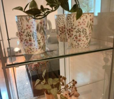 Food & DrinkTea/Coffee makerBathroomPrivate bathroom, Shampoo, Body soap, Toilet, Conditioner, Toilet paper, Hairdryer, Towels, ShowerMedia & TechnologyCable channels, TV, Flat-screen TVGeneralTrash cans, Key access, Tile/Marble floor, Hardwood or parquet floors, Heating, Fire extinguisher, Ironing facilities, Iron, Smoke Alarm, Private entranceKitchenKitchen, Electric kettle, Kitchenware, Coffee machine, Dining table, Washing machine, Stovetop, Refrigerator, Cleaning products, Wine glasses, Oven, DishwasherLiving AreaDining area, Sitting area, SofaOutdoorsBarbecue, Patio, Outdoor furniture, Outdoor dining areaBedroomChildrens' cribs, Linens, Wardrobe or closetViewGarden viewAccessibilityEntire unit located on ground floorBuilding CharacteristicsPrivate apartment in buildingRoom AmenitiesClothes rack, Socket near the bed, Non-feather pillow, Drying rack for clothingEntertainment & Family ServicesBoard games/puzzles, Books, DVDs or music for children |