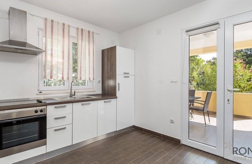 The apartmentZlatko 1 located on the ground floor. Apartment (48sqm)consists of: Two bedrooms, living room with dining room and kitchen, bathroom with shower, terrace with table and chairs, private parking.