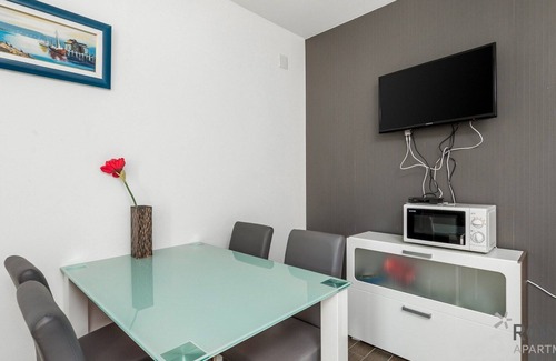 Apartment features: air conditioner, designer furniture, satellite TV (LCD), equipped kitchen with dishes, oven, microwave, dishwasher, refrigerator with freezer, washing machine, hair dryer, coffee machine, BBQ, Wi-Fi.