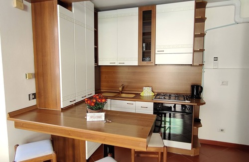 Apartment Roncati is a bright and comfortable 37 sq.mt one bedroom apartment located on the 2nd floor of a house owned in the center of the village. Convenient location that allows you to easily reach all means of transport, shops, bars, restaurants and gardens.
