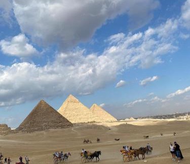 ROOF PYRAMIDS View features free bikes, outdoor swimming pool, a shared lounge and restaurant in Cairo. Providing a bar, the property is located within a 16-minute walk of Giza Pyramids. The property provides room service, an ATM and currency exchange for guests. At the inn, all rooms are equipped with a deskand a balcony with a pool view. Complete with a private bathroom equipped with a bidet and free toiletries, all guest rooms at ROOF PYRAMIDS View have a flat-screen TV and air conditioning, and certain rooms will provide you with a terrace. The rooms will provide guests with a closet and an electric tea pot. Breakfast is available, and includes buffet, continental and vegetarian options. A number of activities can be enjoyed on site or nearby, including hiking and casino. Speaking Arabic, Bulgarian, Catalan and Czech, staff will be happy to provide guests with practical information on the area at the reception. Great Sphinx is 1.8 miles from the accommodation, while Cairo Tower is 8.8 miles from the property. Sphinx International Airport is 19 miles away, and the property offers a paid airport shuttle service.