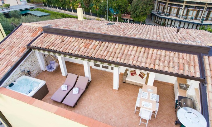 9.4 miles from Gardaland in Garda, Rooftop Apartment provides accommodations with access to a hot tub and open-air bath. This property offers a rooftop pool, free Wifi, and free private parking. Outdoor seating is also available at the apartment. Providing a terrace with mountain views, this apartment also provides guests with a satellite flat-screen TV, a well-equipped kitchen with a dishwasher, an oven, and a microwave, as well as 2 bathrooms with a shower and a hair dryer. There's also a seating area and a fireplace. Guests can make the most of the warm weather with the property's barbecue facilities. Terme Sirmione - Virgilio is 16 miles from Rooftop Apartment, while Tower of San Martino della Battaglia is 18 miles away. Verona Airport is 18 miles from the property.