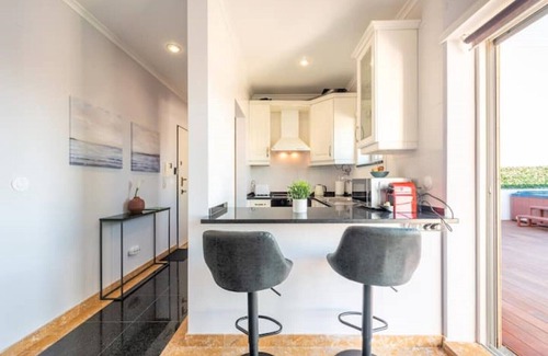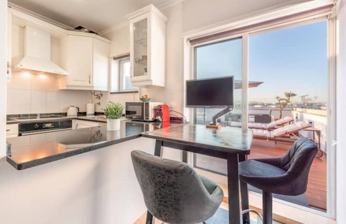 Very conveniently located small 1 bedroom flat. Enjoy sunny days in its exclusive terrace with mini Spa. It's your retreat-base to visit Lisbon-Sintra-Comporta-Óbidos-Nazaré.