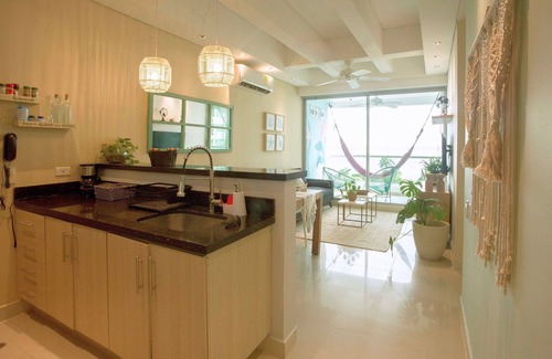 For your comfort, the entire apartment is air-conditioned, including both bedrooms and the living room, so you can stay cool in Cartagena’s tropical climate. The living area is spacious and bright, opening onto the balcony with its sea view—creating a perfect space for everyone to relax together. The kitchen is fully equipped with modern appliances and all the cookware you need to prepare meals just like at home. You’ll also have high-speed WiFi, ideal for working remotely or streaming your favorite shows during your stay.