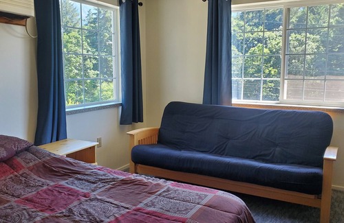 Visit the Columbia River Gorge National Scenic Area and retreat in our unit. It features a queen bed and futon, kitchen, a full bed in separate tiny bedroom, bathroom with shower over tub, WiFi, heating, and AC.