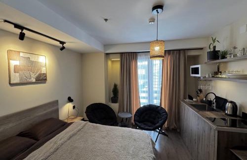 Providing a shared lounge, Room 416 offers accommodations in Gudauri. Guests staying at this apartment have access to a balcony. The accommodation features a 24-hour front desk, an elevator, and currency exchange for guests. With free Wifi, this 1-bedroom apartment provides a flat-screen TV and a kitchenette with a microwave and fridge. Towels and bed linen are provided in the apartment. The accommodation is non-smoking. A mini-market is available at the apartment. During the colder months, guests can enjoy winter sports in the surrounding area.