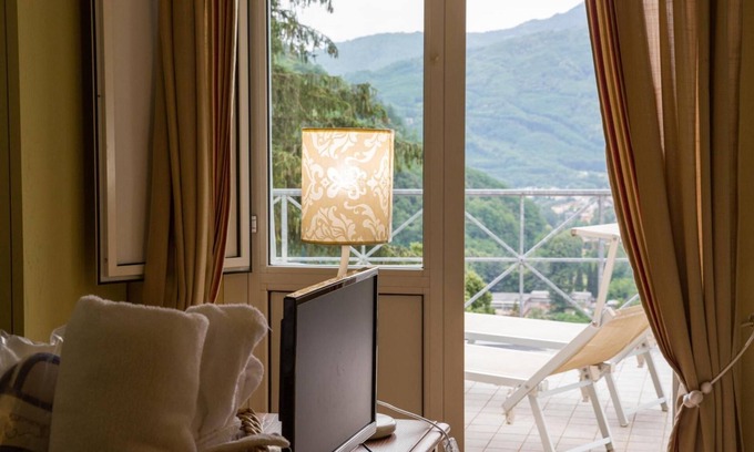 Hotel & Terme Bagni, with an indoor thermal pool, is ideal for a wellness holiday and is located in the beautiful setting of Bagni di Lucca, on a hill overlooking the Lima stream. All rooms, furnished in traditional style, offer views of the Tuscan countryside. The restaurant serves typical dishes from the Garfagnana region. The property is surrounded by greenery and tranquility, in a privileged position. Access to the pool is included in your stay.