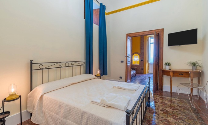 The historic property dates back to 1600 as a residence for Benedictine monks and covers an area of 1200 sqm. In the nineteenth century, it was converted into a private residence by a Sicilian nobleman. The property has 3 rooms: the Red and Green rooms share a terrace covered with natural fabrics, ideal for relaxing, while the Yellow room has a private entrance and separate access.