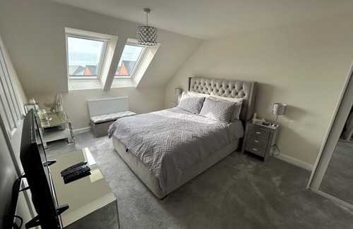 Room for 4 in a Lovely Spacious Formby New Build is located in Formby. Room for 4 in a Lovely Spacious Formby New Build provides accommodation, featuring Internet, Parking, Balcony/Terrace, among other amenities. This House features Internet, Parking, Balcony/Terrace, to make your stay a comfortable one.