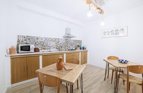The Lu Balaru room is inside the Domo Amsicora boutique apartment, an apartment that represents Sardinia, the apartment despite being shared guarantees privacy and independence as it is shared only with another room and each with a private bathroom. The spacious and full service kitchen guarantees the adequate space for sharing the two rooms, the apartment furnished by local artisans and with unique and purchasable objects that represent Sardinia and designed to make you live a Sardinian experience. The Lu Balaru room takes its name from the typical mask of the city of Porto Torres, inside as well as finding various unique works and souvenirs of Balaru, you will find its history. If you want to live a Sardinian experience, start by booking Stanza Lu Balaru.