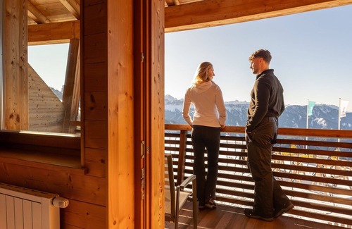 The Rossalm Panoramic Room 5 is located on the Plose near Brixen and offers direct access to the ski slopes and hiking area. The 17 m² accommodation consists of a bedroom and a bathroom and can accommodate 2 people. Amenities include high-speed Wi-Fi (suitable for video calls) with a dedicated workspace for your home office, a TV, towels, bathrobe and sauna towels. You also have access to a shared sauna and a communal outdoor whirlpool. A baby cot and a high chair are available on request. The room also features a private balcony where you can relax in the evening.