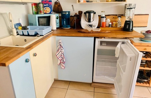 There is a shared kitchen for guests on site. For your comfort, a charging station for electric vehicles is available. You can rent bicycles and e-bikes for an additional fee to explore the area. Street parking is available, and public transport is nearby. Events are not permitted on the property.