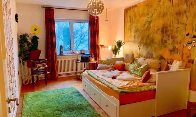 The accommodation offers you, among other things, a Sternenzimmer in Kassel with space for up to two guests. An additional single room is available for a third guest. There is one bathroom in total. The room is equipped with Wi-Fi and provides a cozy atmosphere for your comfort. A fully equipped kitchen allows you to prepare your own meals. We kindly ask you to keep the place clean. Flexible check-in is possible by arrangement via a door code.
