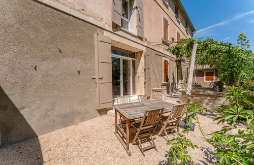 At Mas Saint Louis in Les Angles, you enjoy a shared terrace in a 2000 m² park with no overlooking neighbors. The property combines modern comfort and regional charm, ideal for discovering the Camargue and the Avignon area.