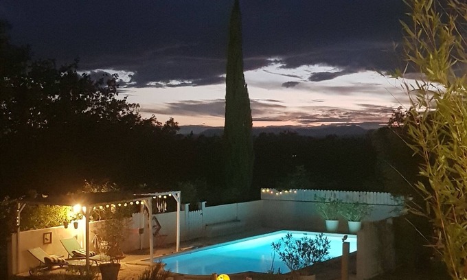 Room with terrace and pool between Nîmes and Alès Magnificent view of the Cévennes has 1 Bedroom , 1 Bathroom, and max occupancy of 2 people. The minimum rental for this property is 1 nights, but this can change depending on the season you plan on staying. Previous guests have given good rated it, and VRBO labeled it a top-rated Bed & Breakfast because of the excellent services rendered by the owner or manager of this Bed & Breakfast, and has consistently provided great experiences for their guests. Most families or guests that use it recommend it to their friends and some of them are repeat guests. Bed & Breakfast has a friendly neighborhood, and the Ners has interesting places to visit. If you want to learn more about the Bed & Breakfast in Ners, such as places to visit and things to do nearby, you can check below to learn more.