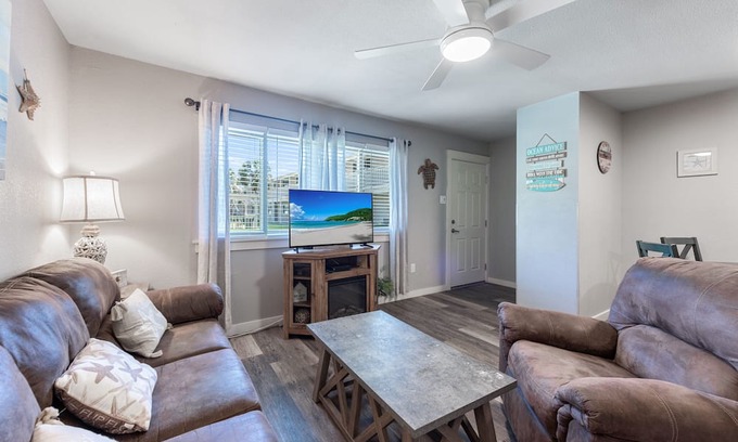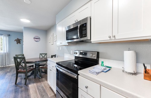 Whether you walk to the beach (only 1 block away) or relax in our beautiful courtyard, prepare your meals in our fully equipped kitchens, or at one of our three BBQ picnic areas, horseshoes, or clean your catch of the day at our fish cleaning station - you will find just what you need at The Courtyard! Come enjoy one of Port Aransas's best hidden gems! Newly remodeled one bedroom condo located in town. The courtyard style setup offers a spacious pool in the center of the complex. Come relax! You deserve it! STR#220603