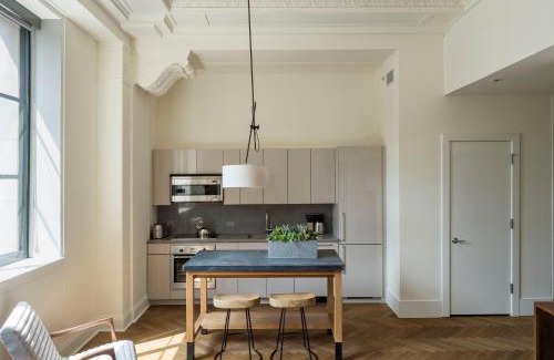 Located just 2625 feet from Reading Terminal Market in downtown Philadelphia, ROOST Apartment Hotel offers fully-equipped apartments with boutique hotel amenities. Free WiFi access is offered. Featuring vaulted ceilings, herringbone hardwood flooring and oversize windows, each furnished unit is decorated with Turkmen rugs, custom artwork and living plants. Each unit is also equipped with a full-size kitchen and private bathrooms with Davines toiletries and SFERRA linens and bath towels. There is a 24-hour front desk, shared roof terrace and weekly housekeeping at ROOST Apartment Hotel. Guests are offered access to free bike rentals, a lending library and The onsite fitness center for guest use. City Hall is 1148 feet from ROOST Apartment Hotel, while Avenue of the Arts is only 689 feet away. University of Pennsylvania is 1.4 mi from the property.