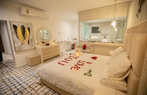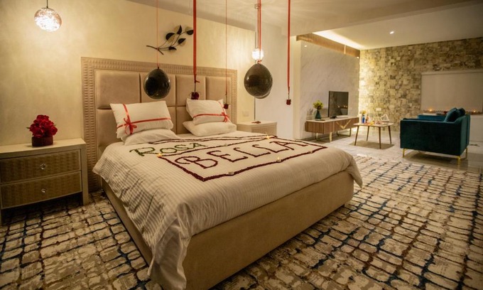 ROSA BELLA offers accommodations in Nizwa, a 3-minute walk from Nizwa Fort. Guests can go for a swim in the private pool. Guests can enjoy city views. The accommodation comes with a fully equipped kitchenette with a fridge and coffee machine, a flat-screen TV, and a private bathroom with hot tub and bidet. All units are air conditioned and include a seating and/or dining area. At the apartment complex, all units are allergy-free. The nearest airport is Muscat International Airport, 91 miles from the apartment.