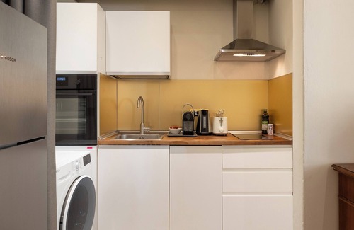 As you settle into this 2-bedroom, 1-bathroom rental, you'll find a dining area, a safe, air conditioning, and a desk. Bathroom amenities include a hair dryer, a bidet, and towels. The kitchen is equipped with an oven, a stovetop, and a refrigerator, as well as a coffee maker, an electric kettle, and a microwave. And because there's a washer and dryer, you can go a bit lighter on your packing.