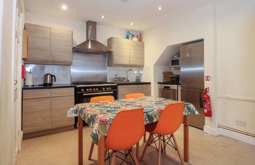 Rose Hill consists of a kitchen/diner with dining seating for six, a dining room with seating for twelve, and a sitting room with a Smart TV. The bedrooms consist of a double with an en-suite, a third-floor double bed with an en-suite, two fourth-floor double beds, a third-floor twin with an en-suite, a third-floor twin, and two fourth-floor twins. There is a bathroom with a bath, shower over, basin, and WC, and a shower room with a walk-in shower, basin, heated towel rail, and WC. WiFi, fuel, power, bed linen, and towels are included in the rent. Outside, there is an enclosed split-level rear decking with furniture. Pet-friendly. Sorry, no smoking. Enjoy your trip to the property Rose Hill. Note: There is one allocated car space located on the next street in a small private car park, there are some pay and display car parks in town or close by on street parking. Note: Pets are welcome but on the ground floor only. Note: This property is suitable for those with limited mobility. Note: Good housekeeping bond of GBP 500. Note: Bookings during school summer holidays must start on a SATURDAY. Note: This property not suitable for those with limited mobility