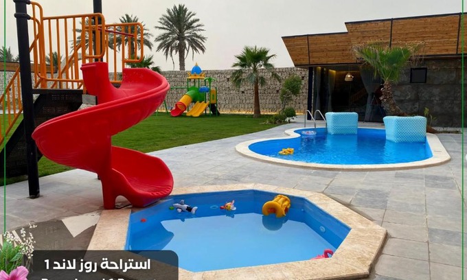 Set in Mu‘askar al Buşayyir, 31 km from Wathnan Mall and 34 km from Gulf Mall, Rose Land offers accommodation with free WiFi, air conditioning and a terrace. This holiday home has a private pool, a garden and free private parking. The holiday home with a balcony and garden views features 1 bedroom, a living room, a flat-screen TV, an equipped kitchen, and 4 bathrooms with a shower. Guests can enjoy the indoor pool at the holiday home. Jassim Bin Hamad Stadium at Al Sadd Club is 37 km from Rose Land, while Qatar Sports Club Stadium is 38 km away. The nearest airport is Doha International Airport, 47 km from the accommodation.