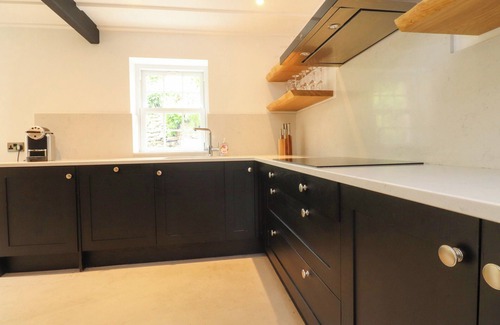 Amenities: Ground source heat pump. Double oven, induction hob, microwave, fridge/freezer, washer/dryer, dishwasher, coffee maker. TV, WiFi. Fuel, power, and starter pack for woodburning stove inc. in rent. Bed linen and towels inc. in rent. Travel cot, highchair, and stairgate available. Off-road parking for 3 cars. Rear multi-level garden with patio, lawn, furniture, and hot tub. 2 well-behaved pets welcome. Sorry, no smoking. Shop 3.7 miles, pub 0.1 miles, river 0.3 miles. Note: A few steps up to property, a step up into sitting room, and a few steps out to garden, please take care. Note: Pets are not allowed in bedrooms or on furniture and are not to be left in the property on their own. Note: This property has a Good Housekeeping Bond of £350. This property does not accept hen and stag parties and has a hot tub curfew of 8.30pm. This property supplies bathrobes.