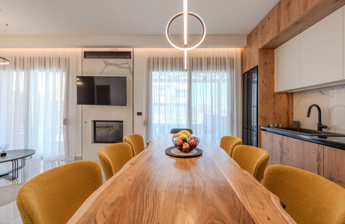 Rosy Pair is a unique and stylish estate offering the perfect setting for families, couples, or groups of friends seeking a relaxed yet well-connected holiday experience in Crete. Blending modern architecture with comfort and privacy, this elegant property accommodates up to 12 guests and consists of two fully independent properties, Rosy 2 villa and Little Rosy ,ideal for enjoying time together while preserving personal space and comfort. Accommodating up to eight guests, Rosy 2 features three elegant bedrooms and a convertible sofa bed in the living room. On the ground floor, guests will find a bright, open-plan living space complete with a cozy fireplace, smart TV, fully equipped kitchen, and a dining area for eight. This level also includes a serene double bedroom with its own veranda and a modern bathroom with a walk-in shower.Upstairs, two more thoughtfully designed bedrooms await, one with a double bed and the other with two single beds, sharing a spacious, sunlit bathroom with a walk-in shower. Each bedroom opens onto a private balcony, allowing guests to enjoy calming views and abundant natural light. All bedrooms are equipped with smart TVs, and the villa features air conditioning throughout and high-speed Wi-Fi for total convenience.Step outside to your private oasis: a 28 sqm swimming pool (7m x 4m, 1.5m deep) surrounded by sun loungers, beanbags, umbrellas, and a refreshing outdoor shower. Enjoy al fresco dining in the outdoor BBQ area, perfect for long, leisurely meals under the Cretan sun.Little Rosy, is a stylish and cozy 65-square-meter haven, thoughtfully designed in a modern mezzanine style. Perfect for couples, small families, or friends, this retreat offers a peaceful and charming escape in the heart of Crete.Blending contemporary design with homey comfort, the open-plan layout features a bright living area with a fireplace, a smart TV, and a plush convertible sofa bed—ideal for accommodating two extra guests. The fully equipped kitchen includes a central island with four stools, perfect for enjoying breakfast, cocktails, or shared meals.On the main level, you'll also find a spacious bathroom with a sleek walk-in shower. A wooden staircase leads to the airy mezzanine bedroom, where a cozy double bed rests beneath high ceilings, creating a warm and inviting atmosphere. The bedroom also includes its own TV for added comfort. Throughout the home, you'll enjoy air conditioning and high-speed Wi-Fi for maximum convenience.Step outside and immerse yourself in relaxation. Unwind in the private jacuzzi (fits up to four guests,operating times from 09.00 to 19.00), lounge on the sunbeds beneath umbrellas, or enjoy alfresco dining in the outdoor dining area, complete with a BBQ—perfect for long, leisurely meals under the Cretan sun.Ideally located just a 10-minute walk from one of Crete’s largest waterparks (open may to october) and a short drive from the lively resort town of Hersonissos, the property offers the perfect balance of tranquility and access to beaches, restaurants, and nightlife. Just a short drive from Heraklion Airport and the scenic towns of northern Crete, this charming retreat is your perfect base for a romantic escape or a memorable small-group holiday.