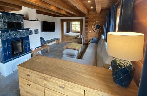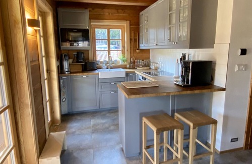 This luxurious villa is the perfect place for your next getaway, with plenty of room to fit everybody! Its four bedrooms each boast double beds and there's even a cozy corner in the living room that can sleep two more. It offers a place for up to 14 people, and if you need more space, plenty of extra mattresses are available. And don't worry about getting ready - it has three bathrooms complete with showers and baths, plus hairdryers so you'll always look your best during your stay. As luxurious as the bathrooms are, the same yield for the kitchen. Entering this kitchen is like entering a chef's paradise. You don't have to be an expert cook to feel at ease—every tool you need, like a fridge, freezer, oven, microwave and utensils is already here! Don't worry about dirty dishes, either; the dishwasher has got your back there. And if that wasn’t enough of a bonus, just think how nice it will be in the morning when you can stroll in for a delicious cup of tea or coffee with toast before tackling whatever challenges await outside--talk about starting your day off right! After a day of outdoor fun or thrilling winter activities, come back and drop the dirt off in your villa's washer and dryer. While you're waiting for clean laundry, kick up your feet on one of the comfy couches while catching some shows on TV or curl up with an intriguing book. Kids won't complain about being bored here! They can let their imaginations run wild in the attic, with loads of fun things to do like watching movies and playing games. Or if they're feeling active, there’s no shortage of outdoor activities too - whether it's having a bounce on the trampoline or kicking around a football in the sprawling garden. Summertime brings even more excitement as they get to splash around in an amazing saltwater swimming pond! As the kids frolic and the dogs zip around, it's a perfect opportunity for parents to unwind with an evening drink on the terrace. Then when night falls take advantage of that beautiful summer sky by lighting up the barbecue and gathering 'round a cozy fire - what better way to end your day.