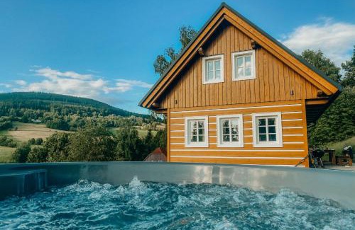 5.8 miles from Bus Stop Strážné in Benecko, Roubenka Viktorie offers accommodations with access to a sauna. The villa features both Wifi and private parking free of charge. Guests can use a garden. Offering a terrace and mountain views, the villa includes 3 bedrooms, a living room, cable flat-screen TV, an equipped kitchen, and 2 bathrooms with a shower. Towels and bed linen are offered in the villa. The accommodation has a fireplace. Skiing and cycling are possible within the area, and Roubenka Viktorie offers ski storage space. Szklarki Waterfall is 28 miles from the accommodation, while Kamienczyka Waterfall is 28 miles from the property. Pardubice Airport is 63 miles away.