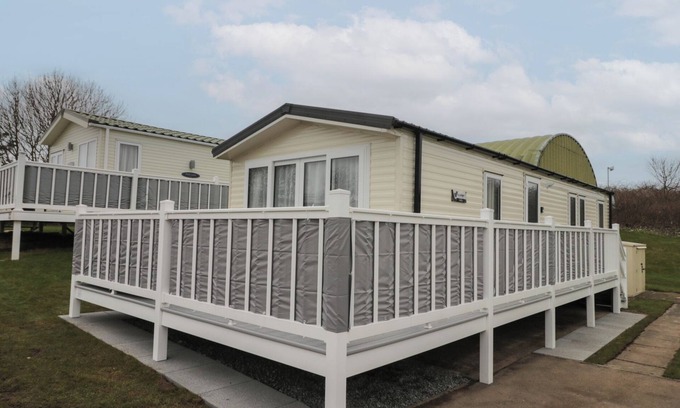 Amenities: Central heating. Gas oven and hob, microwave, fridge/freezer. Smart TV, WiFi. Fuel and power inc. in rent. Bed linen and towels inc. in rent. Off-road parking. Decking with furniture and fire pit. One well-behaved dog welcome. Sorry, no smoking. Shop 1.1 miles, on-site pub 0.1 miles, beach 0.5 miles. Note: There are three steps up to the property, please take care
