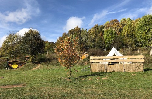 Glamping eco-canvas Yarrow for up to 4 creatures. Includes a private entrance and beds with bedding. All other facilities are shared as a part of Kamp Velebit: guest kitchen indoor and outdoor (fully equipped with utensils, cookware, and fridges), toilets, showers, bbq, campfire, and dining areas. Parking is included and depending on the camp occupation you can park in front of the unit.