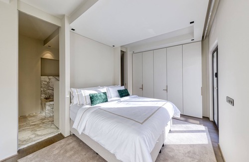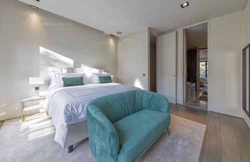 This unique accommodation is close to all sites and amenities. Located in a historic building, dating from 1827, on the Place du Grand Sablon, the luxurious apartment is on the entire 2nd floor and occupies 300m2. Only the vaulted cellars of the old palace which was erected on its premises in the 16th century are still existing. Each room overlooking the Place du Sablon offers exceptional views of the square and its church. A private elevator takes you directly to your personal floor. It includes: 4 large bedrooms, 3 bathrooms, a toilet, a dressing room, a large fully equipped kitchen, a laundry room, a dining room for 12 people, a huge living room, and incredible views of the Grand Sablon square and Brussels. The living room features 3 large sofas, a comfortable chair, a work desk, a guitar, a fireplace, board games, multiple art books, a 75-inch TV, a SONOS sound system, and a minibar. All bedrooms are equipped with 5-star hotel mattresses and bedding as well as large storage spaces: • A queen-size bedroom with a view of the Sablon church and a shared marble bathroom with the next bedroom. • A king-size bedroom with a view of the Palace of Justice and a shared marble bathroom with the previous bedroom. • A king-size bedroom with a view of the Palace of Justice and its own marble bathroom. • A queen-size bedroom with its own marble bathroom. Thanks to your private access code elevator, you will enjoy a totally personal floor of 300m2. Place du Grand-Sablon is one of the most elegant places in Brussels. It is lined with old facades, antique shops, art galleries, numerous cafes, famous restaurants and the best chocolatiers. Its atmosphere will delight you! During the end-of-year celebrations, Christmas decorations will bring you into a festive atmosphere. Every Thursday takes place a gourmet market that will delight your taste buds!
