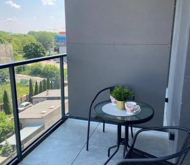 Royal Manu Apartment NETFLIX is located in Łódź, just a 6-minute walk from Manufaktura and 1.9 miles from Lodz Fabryczna. This property offers access to a patio, free private parking, and free Wifi. The accommodation offers an elevator and full-day security for guests. Offering a balcony and city views, the apartment includes 1 bedroom, a living room, cable flat-screen TV, an equipped kitchenette, and 1 bathroom with a shower. Towels and bed linen are featured in the apartment. The accommodation is non-smoking. A mini-market is available at the apartment. A water park is available on-site, and both cycling and hiking can be enjoyed close to the apartment. Piotrkowska Street is 2.2 miles from Royal Manu Apartment NETFLIX, while Lodz Kaliska Railway Station is 2.9 miles away. Lodz Wladyslaw Reymont Airport is 6.2 miles from the property.
